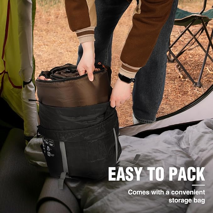 - Easy Storage: Equipped with a convenient storage bag, packing up the sleeping bag becomes a breeze. You can effortlessly fold and stuff the 3-season sleeping bag into the bag, and once stored, it takes up small space. This feature is especially beneficial for travelers, as it allows for easy transportation and storage in backpacks, car trunks, or small living spaces, making your journey more convenient.