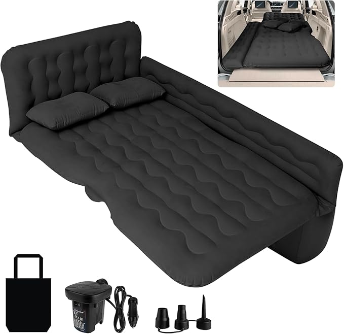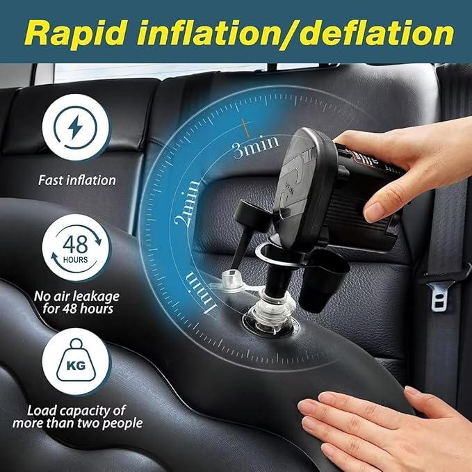 - 【Easy to Use and Carry】The blow up mattress / car bed come with a car air pump suv air mattress, which can be connected to the cigarette lighter to inflate quickly when outdoors car inflatable bed, and it can be fully charged within 2 minutes. When no longer in use, it can be quickly deflated through the three widened vents. After being folded, it will be put into the gift storage bag, which is convenient to carry and does not take up space.