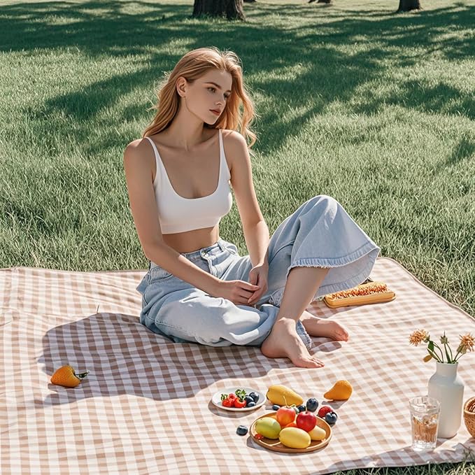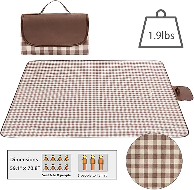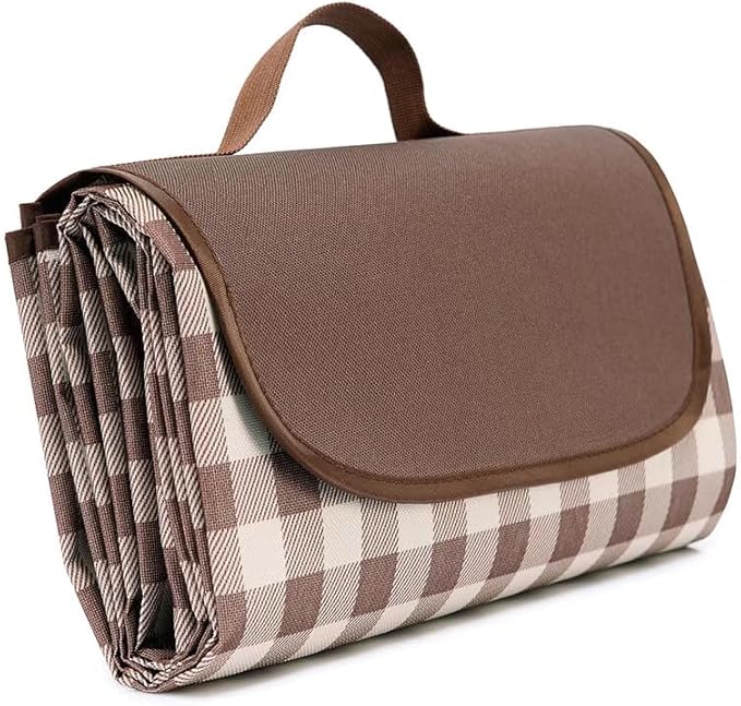 Wind Tour Family Outdoor Waterproof Durable Picnic Blankets with Carry Strap Foldable Sandproof Picnic Floor Mat for Kids Playground Camping Hiking Grass Travelling (1, Coffee Grid)