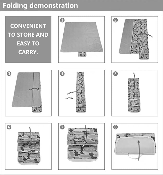 - <b>WIDE APPLICATIONS</b> –The Picnic Mat is ideal for camping, picnics, going to the beach and park or kids playing, baby's crawling indoor. In short, whether it's going out to play or indoor rest, it's a good choice.