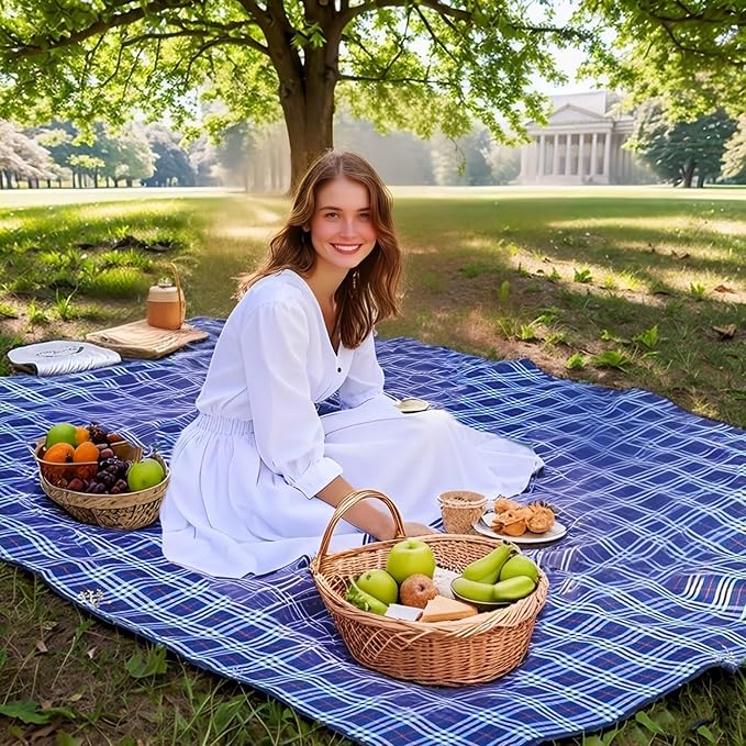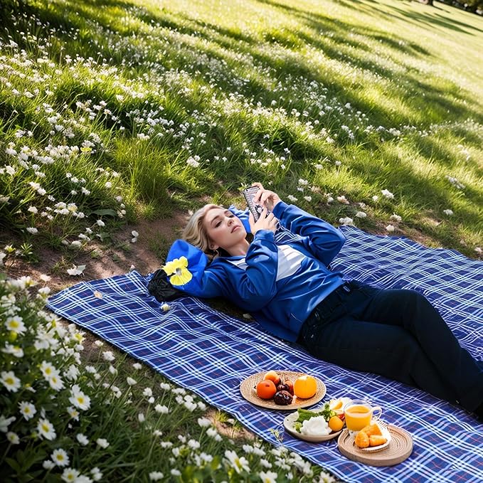 - <b>WATERPROOF AND SANDPROOF</b> – This blanket is made of acrylic fibers+ PE waterproof membrane, the surface is soft and comfortable. And the PE waterproof membrane blocks moisture, anti sand and waterproof. Easily wiped away by simply shaking and slapping. It is your perfect partner to keep dry in a rainy camp site or wet grass for picnic or sandy beach.