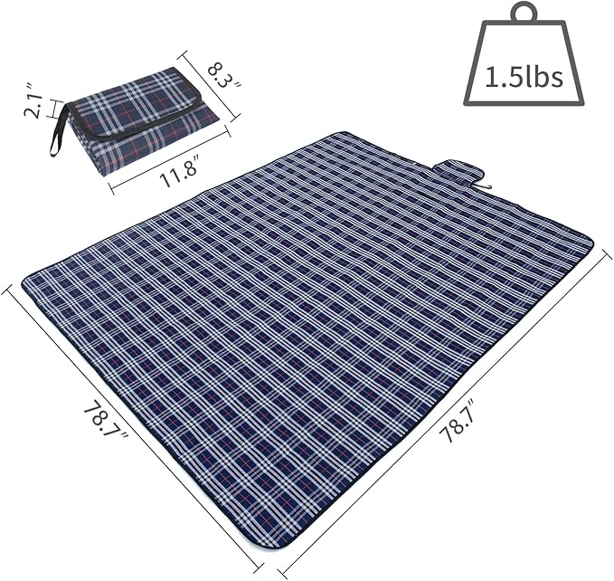 Wind Tour Family Outdoor Waterproof Durable Picnic Blankets with Carry Strap Foldable Sandproof Picnic Floor Mat for Kids Playground Camping Hiking Grass Travelling (1, Navy blue-78.7 * 78.7 in)