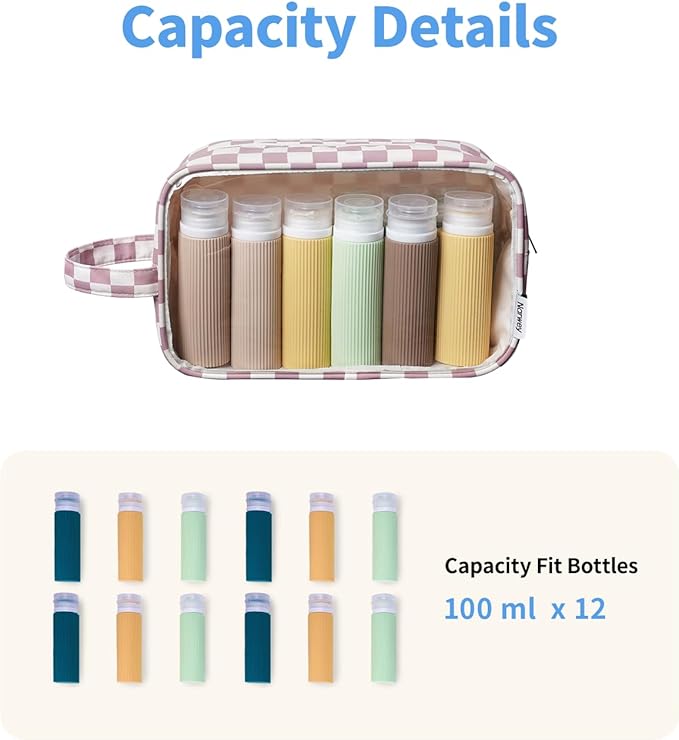 Narwey Checkered Clear Makeup Bag Cosmetic Bag with Zipper for Travel, Clear Toiletry Bags for Traveling Toiletries Women Men, Make Up Pouch with Handle, Skincare Bag (Dusty Pink Checkerboard)