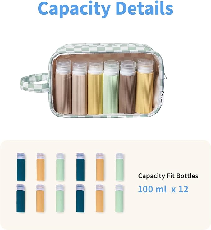 Narwey Checkered Clear Makeup Bag Cosmetic Bag with Zipper for Travel, Clear Toiletry Bags for Traveling Toiletries Women Men, Make Up Pouch with Handle, Skincare Bag (Mint Green Checkerboard)