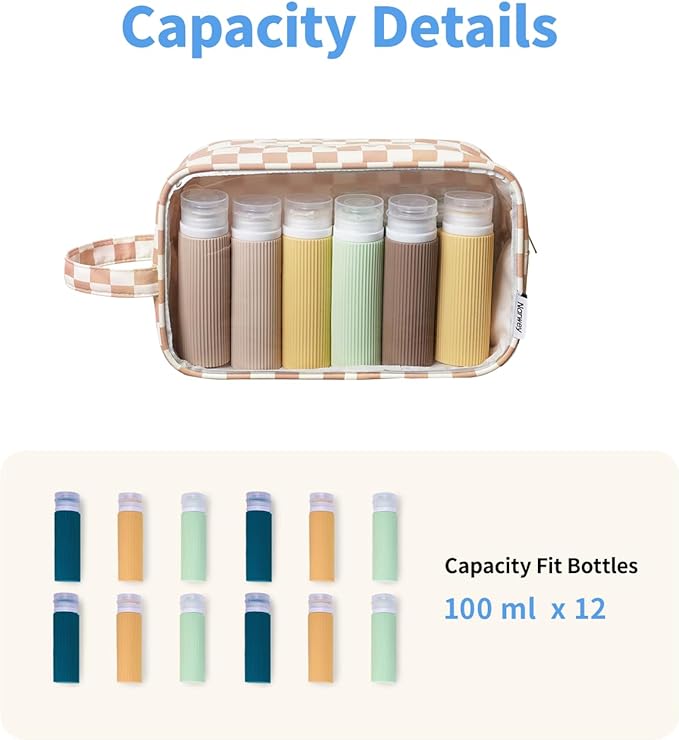 Narwey Clear Makeup Bag Cosmetic Bag with Zipper for Travel, Clear Toiletry Bags for Traveling Toiletries Women Men, Make Up Pouch Organizer with Handle, Skincare Bag (Light Checkerboard)