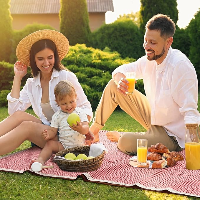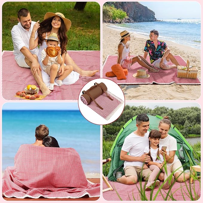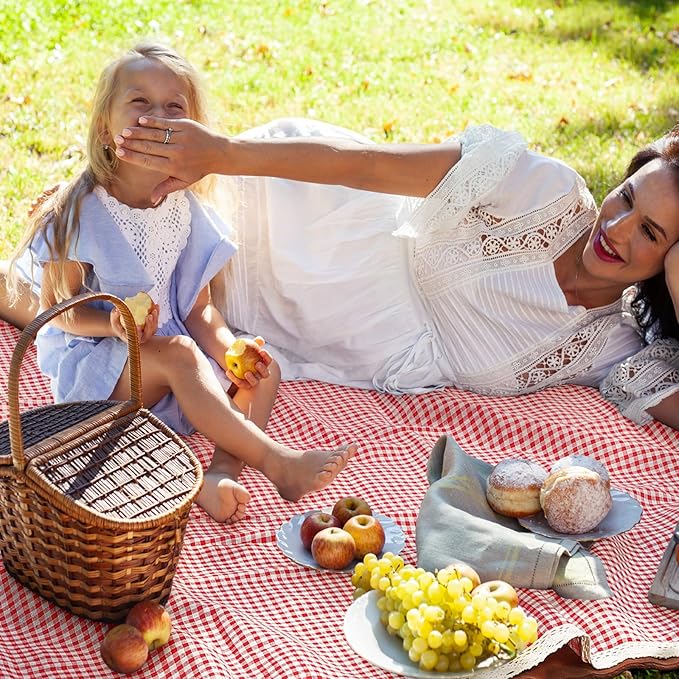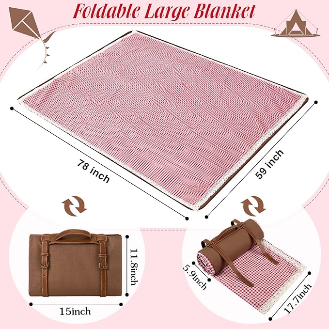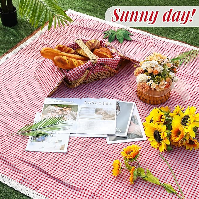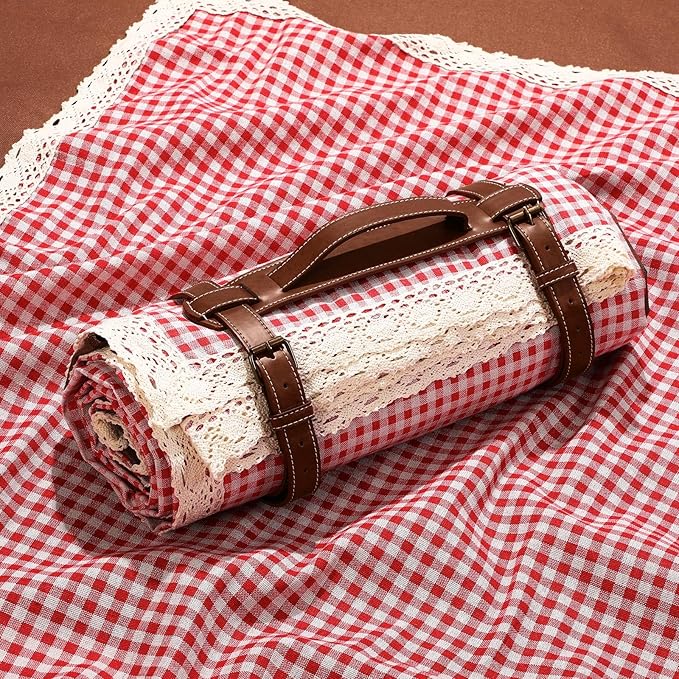 - Practical 2 in 1 Design: the 2 in 1 design enables our red and white plaid camping blanket to cater to multiple uses; The top layer with a boho lace style, serves as a cozy blanket; Simultaneously, the brown bottom layer serves as a waterproof mat that is resistant to moisture and dirt, providing you with a comfortable outdoor experience; Besides, it is a nice photo background; Note: the upper fringe blanket need to be washed to get better using experience, both machine wash and hand wash