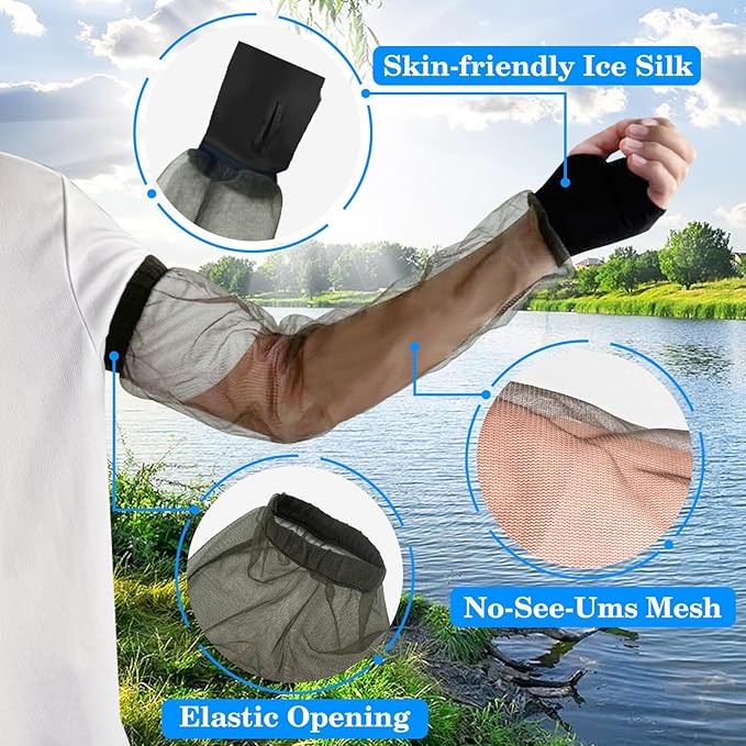 - SIMPLY THE BEST MOSQUITO NET SLEEVES: This mosquito net will keep your arm away from bites of bugs and pests. And the mesh sleeves have soft elastic openings for your upper arms and ice silk openings for your wrists and hands, and no need to wear mosquito jackets or shirt if you only need protect your arms.