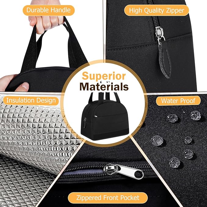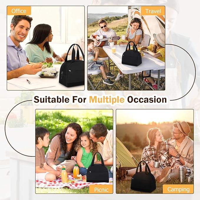- 【Black Insulation Lunch Bag】This women's lunch bag is made with durable aluminum foil insulation, designed to keep your food warm for 4-6 hours and fresh for up to 9 hours. It's easy to clean and convenient to carry, making it both practical and reliable for everyday use.
