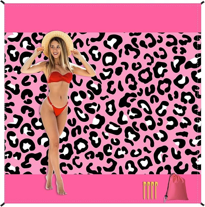 - Sandproof & Waterproof Leopard Print Beach Blanket: Get ready to make a statement with this sandproof waterproof beach blanket, featuring fierce black leopard spots on a vibrant pink base. The 3000mm waterproof layer blocks moisture, while the sand-resistant surface shakes off debris instantly. Stylish, functional, and perfect for your next beach adventure or poolside day.