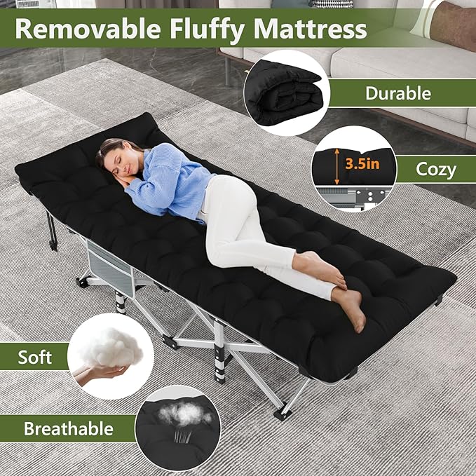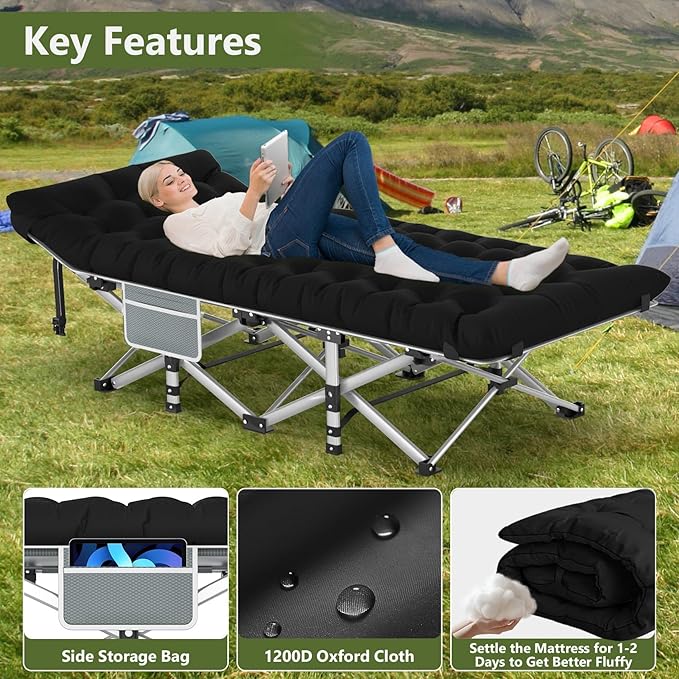 Slendor Camping Cot for Adults, 1200D Oxford Camping Bed with 3.5in Thick Mattress, 500lbs Max Load, Folding Cot for Camping, Travel, Outdoor, Home Guest, Office Nap