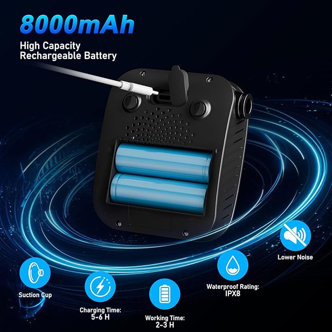 - 8000mAh LONG-LASTING BATTERY - Equipped with an 8000mAh rechargeable battery, the portable shower pump provides up to 180 minutes of continuous use on a single charge. This extended runtime ensures convenience for longer outdoor trips or multiple uses without frequent recharging