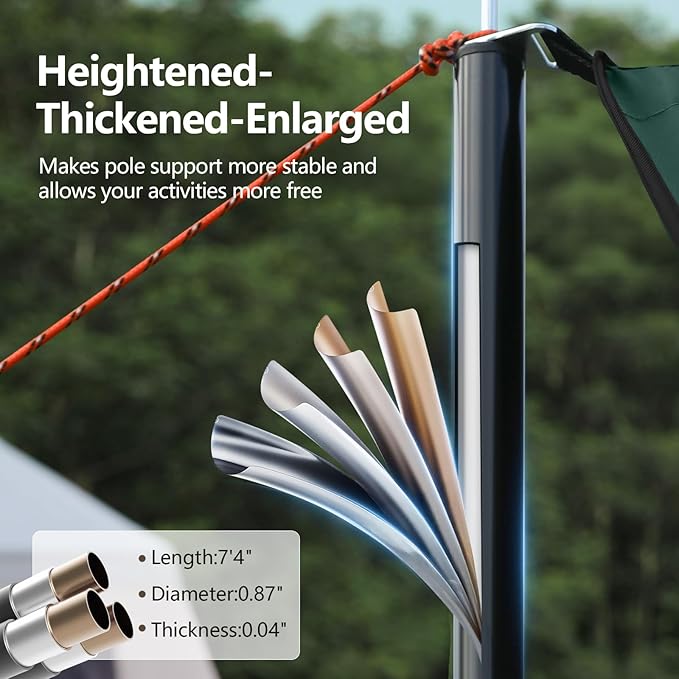 - Easy Set Up: No specialized knowledge is required. Even beginners can easily set up the camping shade according to our product manual and the extra retainer, and quickly enjoy the joy of camping! The package comes with two thickened poles, of which the height can be adjusted from 30.9" to 88.7" Customize your shade structure by adjusting the pole height and placement, creating the perfect rain canopy for your needs