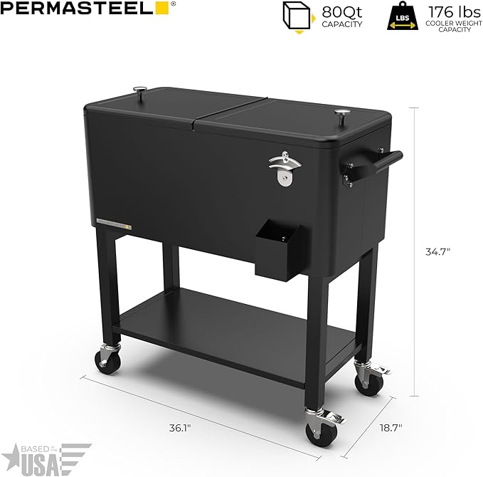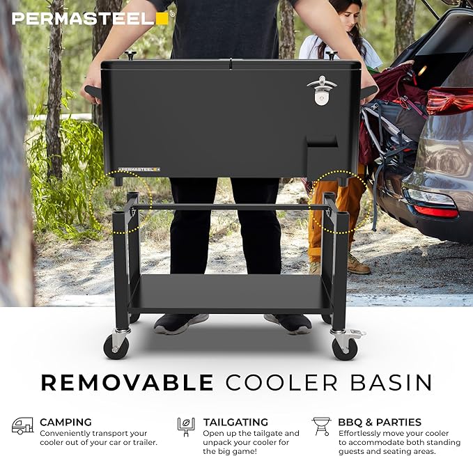 - Detachable & Portable Design - Take the party anywhere you go with the Permasteel outdoor cooler featuring a detachable and portable basin. This drink cart is perfect for beach days, park barbecues, birthdays, holidays, and more.
