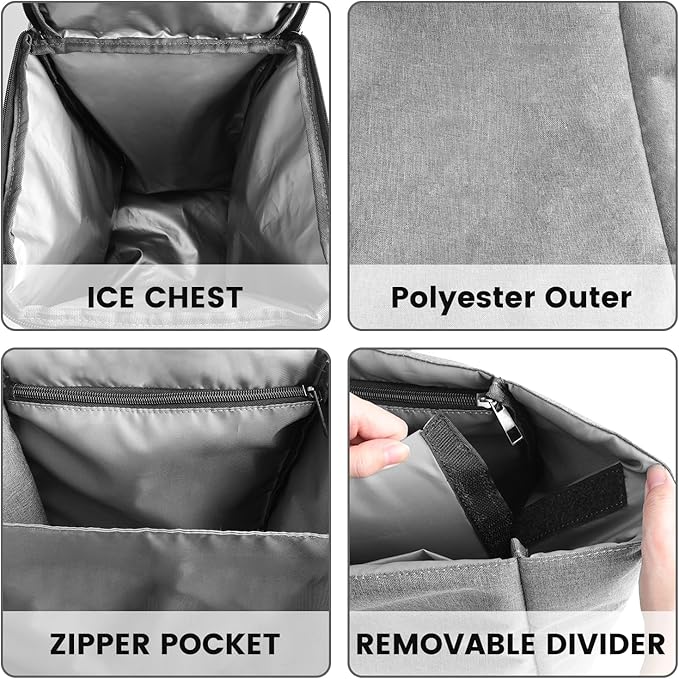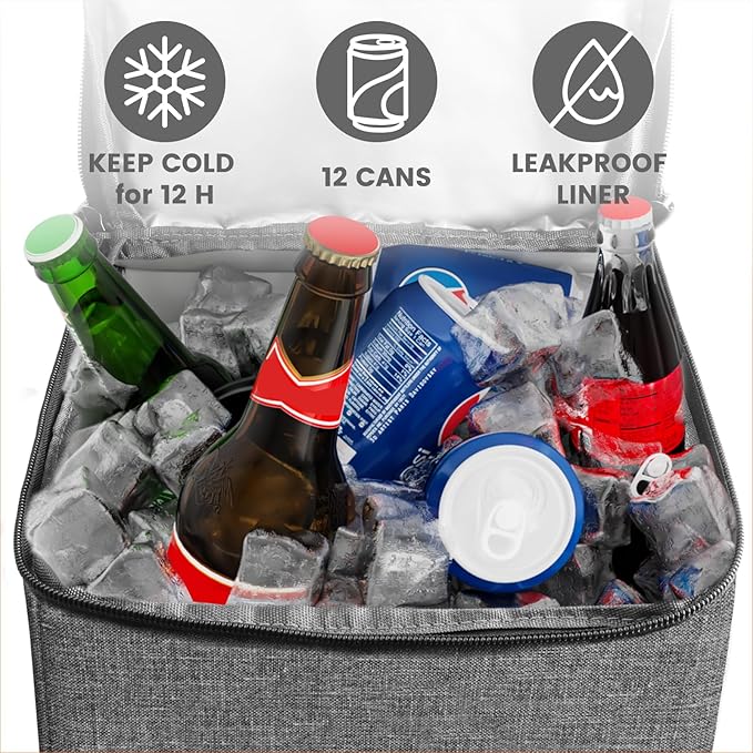 - Exceptional Heat Retention:FIHCH Cooler Organizer is made of advanced silver PEVA material that keeps drinks and food cool for up to 12 hours.Whether you're heading to the beach,having a picnic,hiking,camping,or grocery shopping, this organizer bag ensures that your belongings stay the right temperature throughout the day.