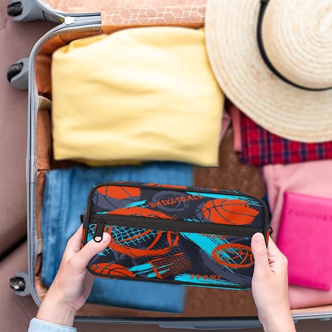 Basketball Boys Toiletry Bag for Kids Dopp Kit Waterproof Hanging Wash Bag Cosmetic Bag Medicine Bag for Travel Sports Shower Essential