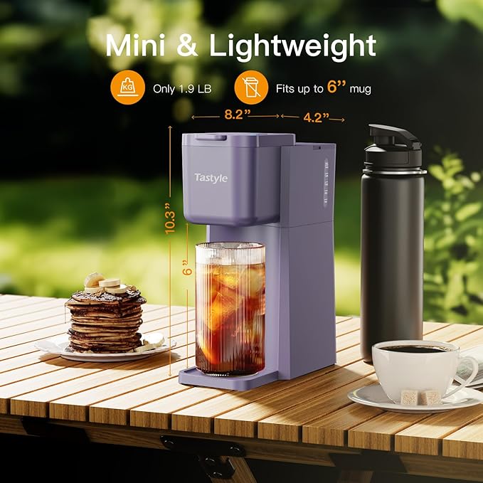 Mini Hot and Iced Coffee Maker Single Serve, for K Cup and Ground, 6 to 14 Oz Brew Sizes, with Recipe Book, for Home, Travel, RV, Office and Dorm, Violet