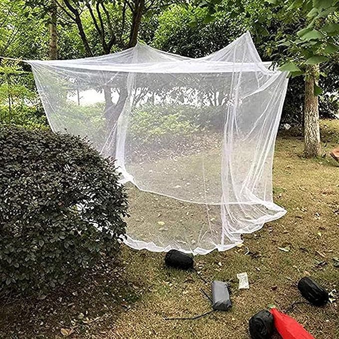 Outdoor Camping Mosquito Net, Large Size White Mesh Insect Netting with Storage Bag for Camping, Picnic, Outdoor Trips (No-Opening 83"x79"x71")