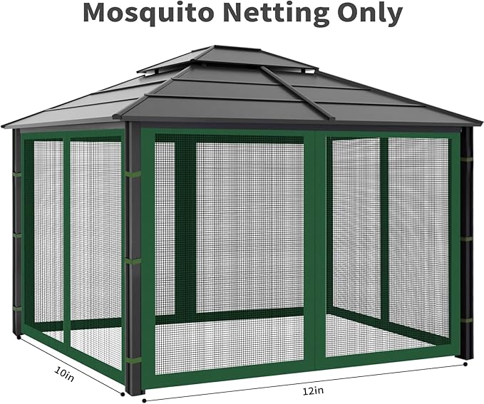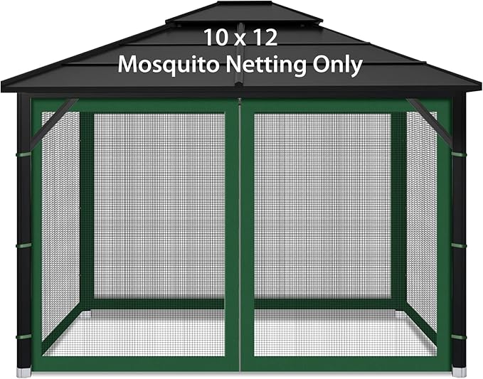 Gazebo Replacement Mosquito Netting Outdoor Universal Gazebo Canopy 4-Panels Screen Sidewalls with Zipper for Patio Garden (Green, 10x12)