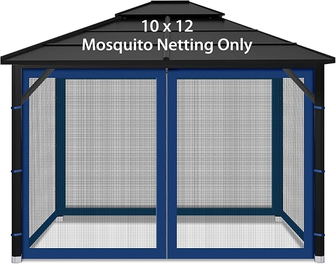 Gazebo Replacement Mosquito Netting Outdoor Universal Gazebo Canopy 4-Panels Screen Sidewalls with Zipper for Patio Garden (Navy Blue, 10x12)