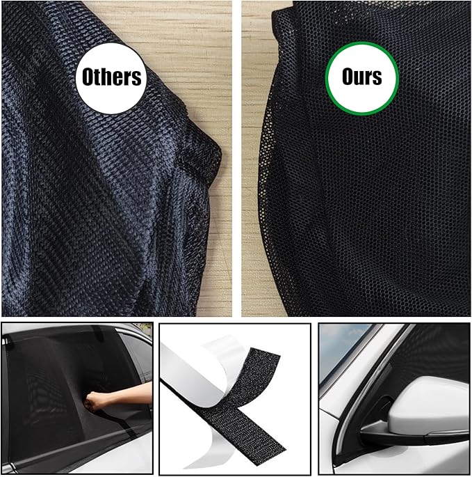 - UPGRADED UV,BUGS AND MOSQUITO PROTECTION: Our car window screen shade is made from durable nylon mesh that is breathable, stretchable, and provides complete privacy blackout. Designed to keep your children from UV, Bugs and Mosquito, it's also a great car window screen for camping.