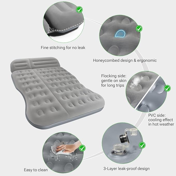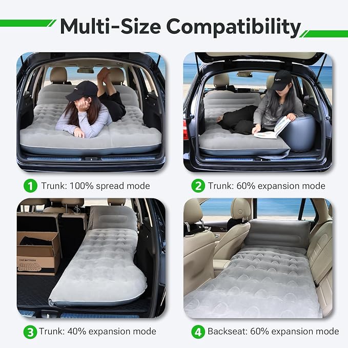 - 【VERSATILE FOR ANY OCCASION】-Our SUV air mattress is designed for all kinds of adventures. Whether you're on a road trip, enjoying a weekend getaway, camping with family, or hosting guests at home, this mattress provides a warm and comfortable sleeping solution