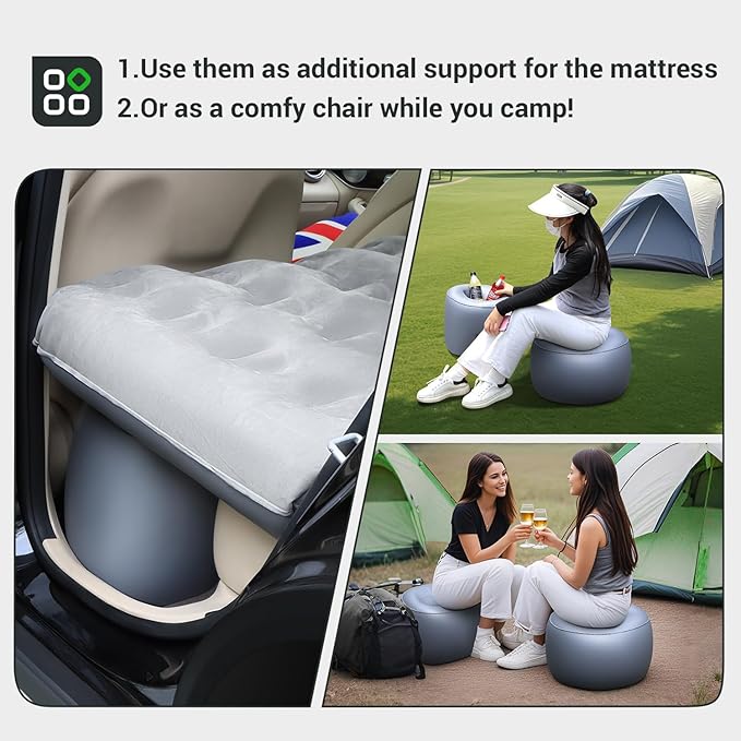 - 【INCLUDES TWO SPECIAL FOOTRESTS】-These footrests support the car mattress on the back seat, preventing it from collapsing. This design allows the mattress to be used not only in the trunk but also on the back seats