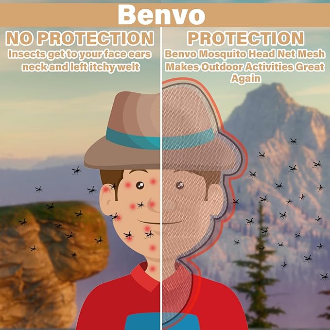 - 【360° All-Around Mosquito Protection】 High-density mesh effectively blocks mosquitoes, flies, gnats, and other biting insects, providing comprehensive protection for your head and neck, allowing you to enjoy outdoor activities without mosquito harassment.