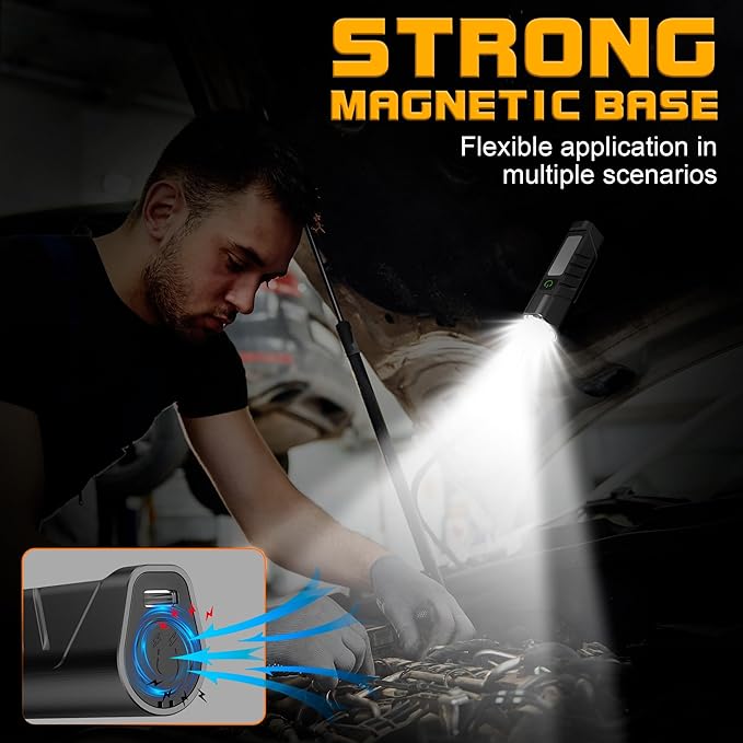 - MULTI-MODE INTELLIGENT SWITCHING: One-touch switching between strong light/weak light/SOS flash modes to meet diverse needs such as lighting, reading, and emergency. The magnetic tail design can be adsorbed on metal surfaces, freeing your hands and easily coping with complex scenes