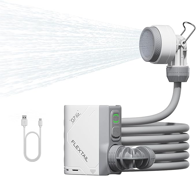 FLEXTAILGEAR Portable Shower Pump, Rechargeable Camping Shower, Outdoor Tiny Shower for Hiking, Waterproof Outdoor Camp Pump, Car wash, Pet Cleaning, Beach Vacations