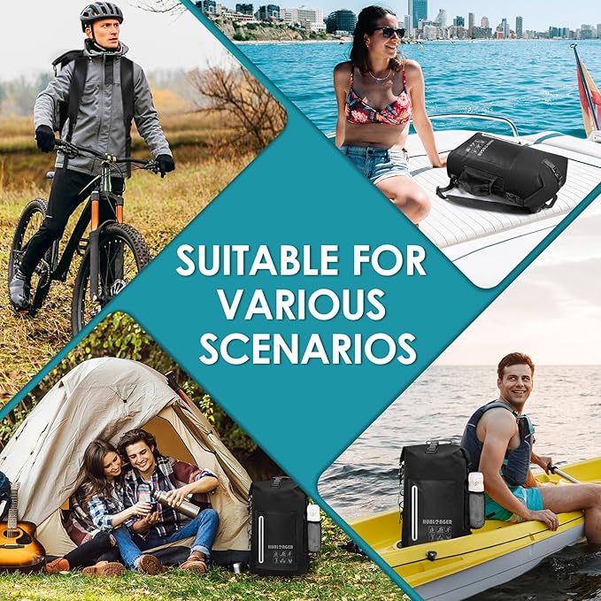 - 100% Waterproof Protection & Floating Design: Crafted with high-strength PVC and triple-layer roll-top closure, hualonger dry bag ensures complete waterproof protection for all weather conditions. Its air-tight seal keeps gear dry even submerged in water. Plus, the floating design prevents loss during water activities like kayaking or rafting