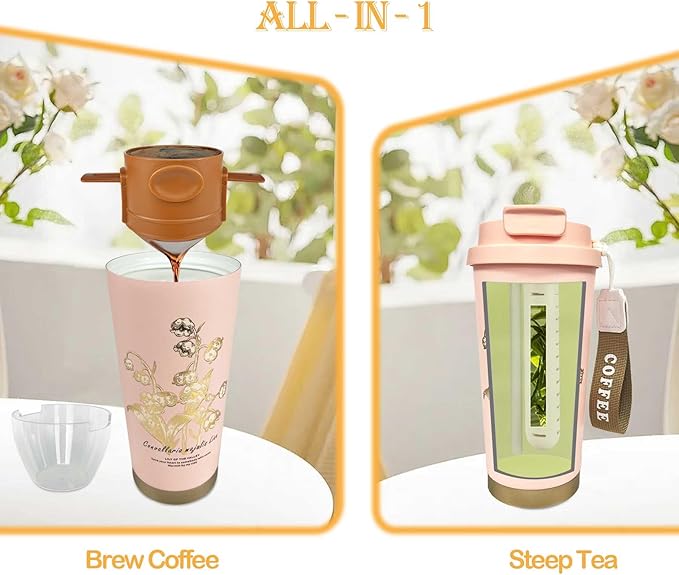 - 【Heat/Cold Insulation】 The coffee mug has good heat insulation performance, keeping hot tea at 95℃ above 50℃ for 6 hours in a 25℃ environment, and it performs even better with cold tea and coffee.Therefore, this tea infuser mug is not only suitable for brewing tea but can also be used as a pour-over coffee mug, fully capable of meeting your needs for enjoying a cup of hot coffee or tea.