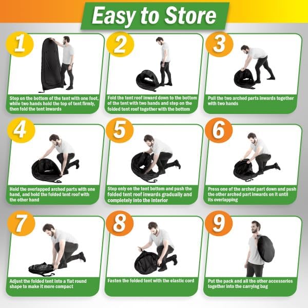 - EASY PORTABILITY - The travel toilet and camping toilet tent store compactly in included carrying bags and set up quickly so you can go on-the-go. The camping toilets portable design makes it easy to pack, with 4 panels that fold to just 4.5-inches tall.