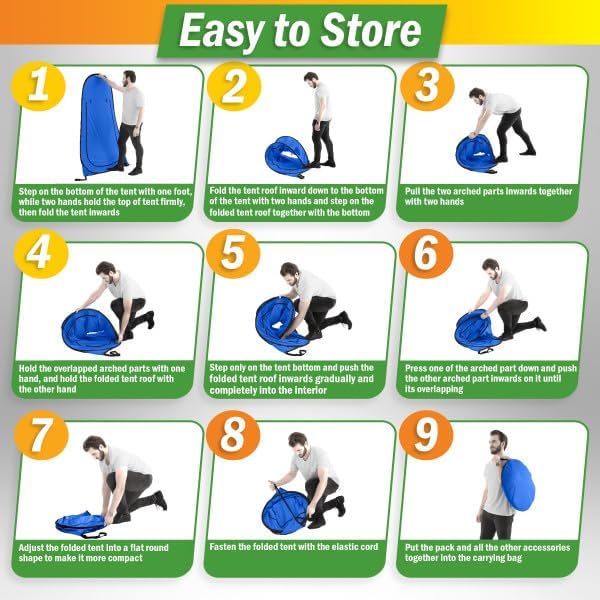 - EASY PORTABILITY - The travel toilet and camping toilet tent store compactly in included carrying bags and set up quickly so you can go on-the-go. The camping toilets portable design makes it easy to pack, with 4 panels that fold to just 4.5-inches tall.