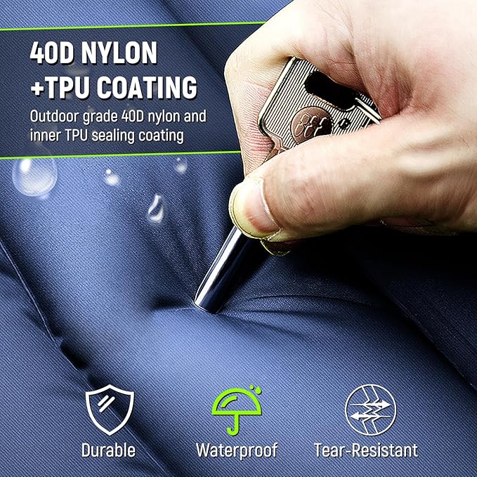 - 【Sturdy & Durable, Conquer Rocky Terrain】Made with the strongest outdoor-grade material, Myxslop insulated camping mat making it virtually puncture-proof against sharp rocks, sticks, and uneven terrain. Whether you're hammock camping, backpacking short trips, or exploring the backcountry, this pad delivers unmatched durability and comfort—so you can rest easy in the wild.